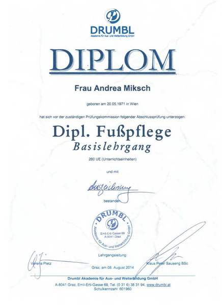 Nicht immer ist es leicht, sein "Täglich Brot" über diesen Berufszweig zu erwirtschaften, weshalb aus einer langjährigen Bekanntschaft mit meiner Geschäftspartnerin Barbara die Idee entstand, GEMEINSAM unsere berufliche Zukunft zu besiegeln, indem ich den Beruf der Fusspflegerin erlernte.
